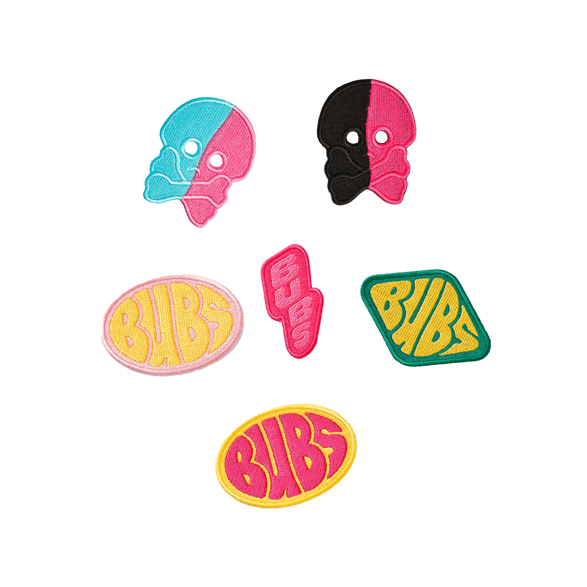 Brodyrmärken i tyg med olika motiv.